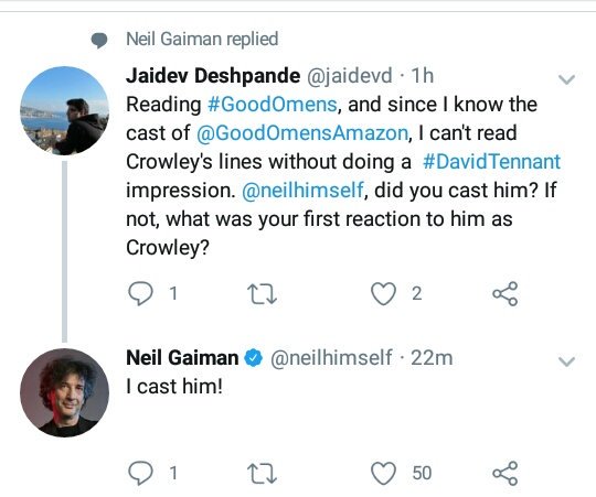 Neil Gaiman On Twitter Tweetledee2b Jaidevd Goodomensamazon Tv Series It S Pretty Ineffable Certainly Less Effable Than Most Television Twitter